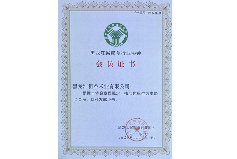 省粮食行业协会会员证书
